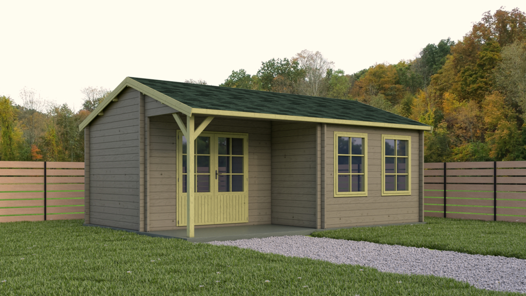 Dimensions fondations : 6,21 m x 3,07 m– Surface au sol : 9,42 m²– Hauteurs murs : 2,02 m– Hauteur faitage : 2,17 m– Epaisseur madriers : 28 mm– Débords de toit : 20 cm– Menuiseries : 1 porte double vitrée opaque de 174 x 183 cm2 fenêtres fixe vitrée opaque de 82 x 53 […]
