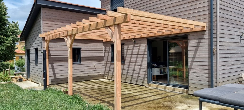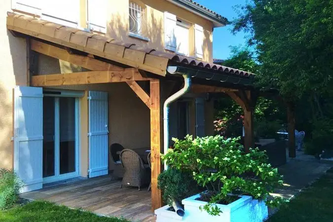 - Un auvent de terrasse, appentis ou une pergola adossée à votre maison, pour créer une pièce supplémentaire.