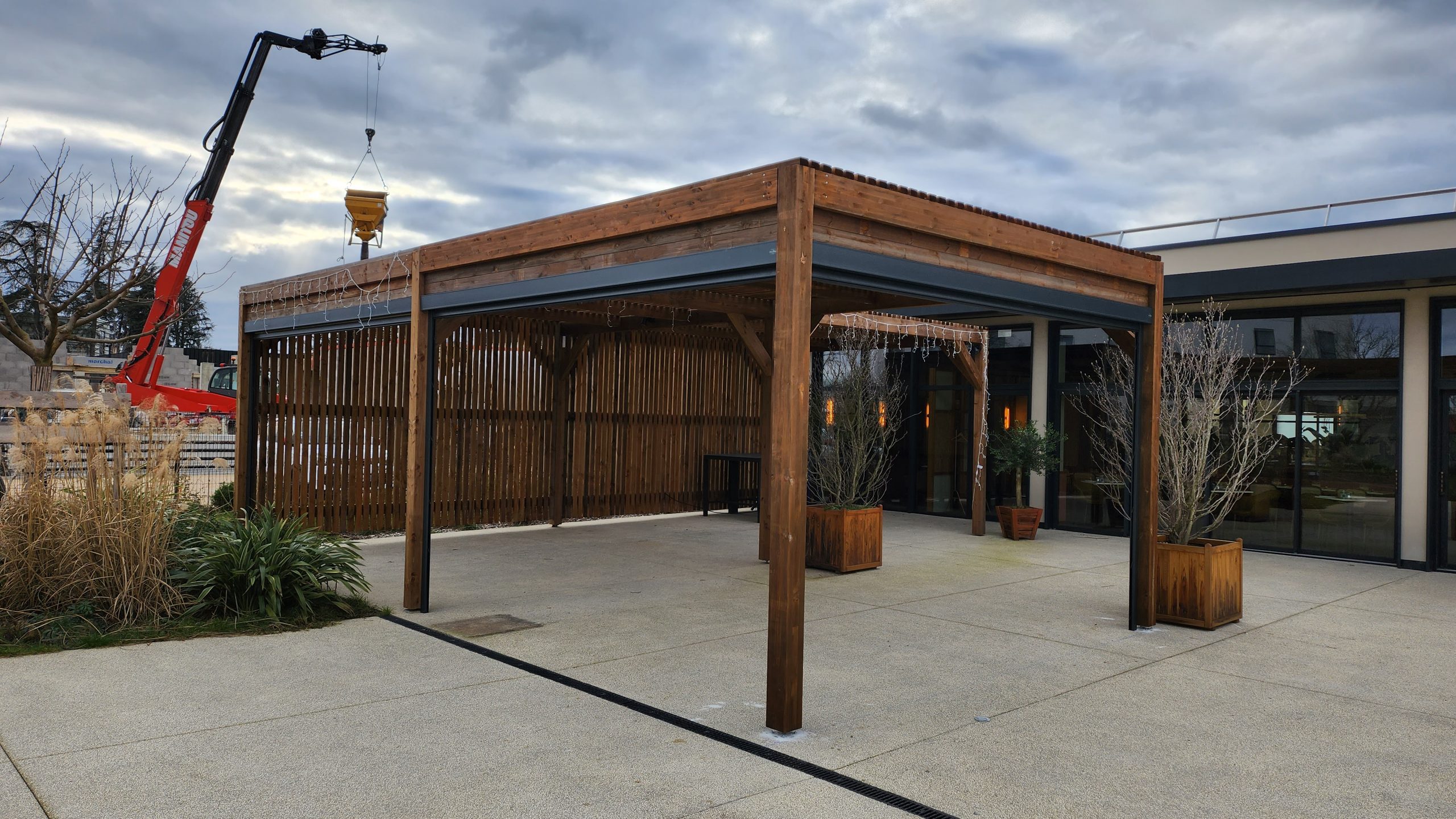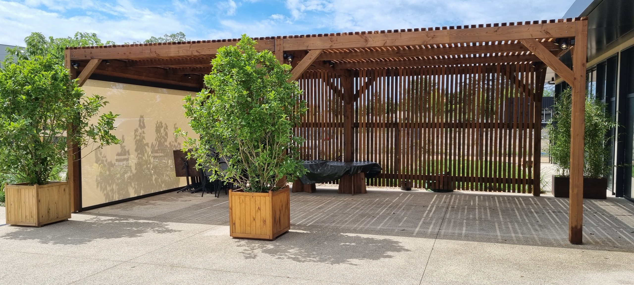 Espace de plaisir par une chaude journée d’été, pour se ressourcer, se rafraîchir sous un abri ombragé. PERGOLAS :