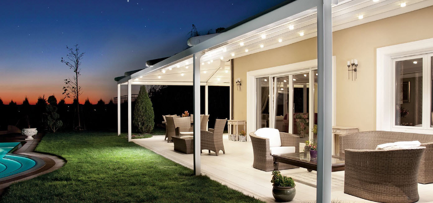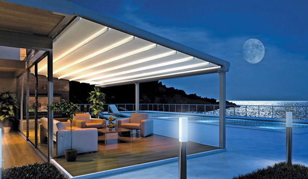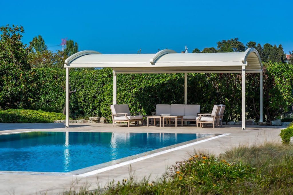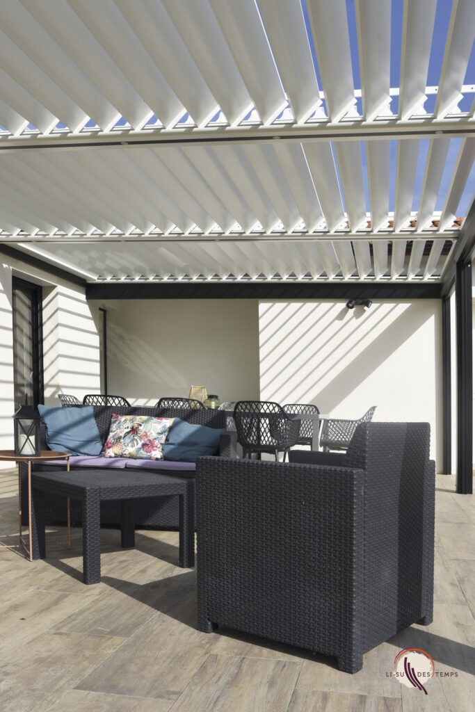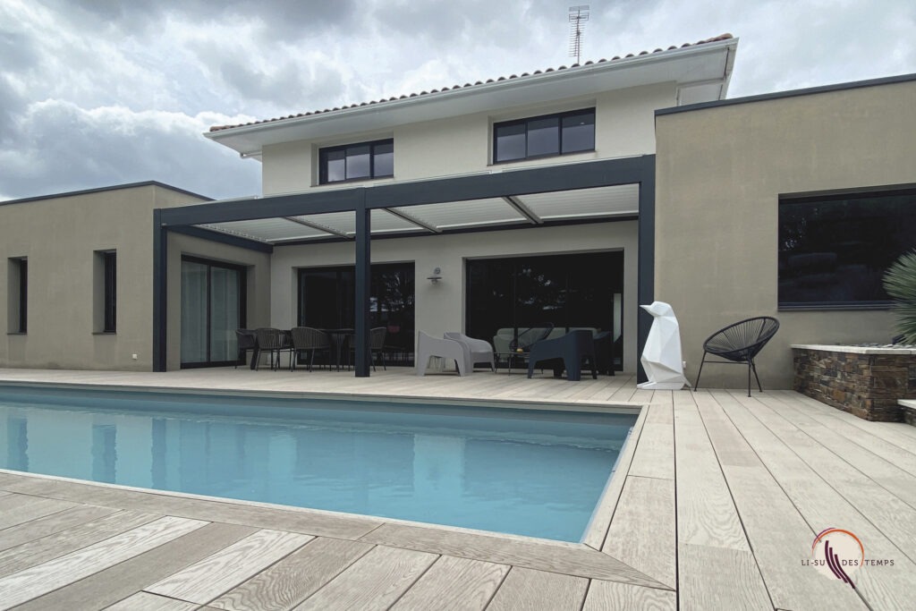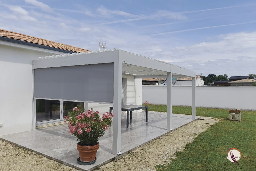 Espace extérieur confortable et modulable en toute saison. Que la pergola soit à lames orientables ou à toile rétractable, elle vous protège du soleil et de la pluie en couvrant votre terrasse, sans assombrir votre maison.