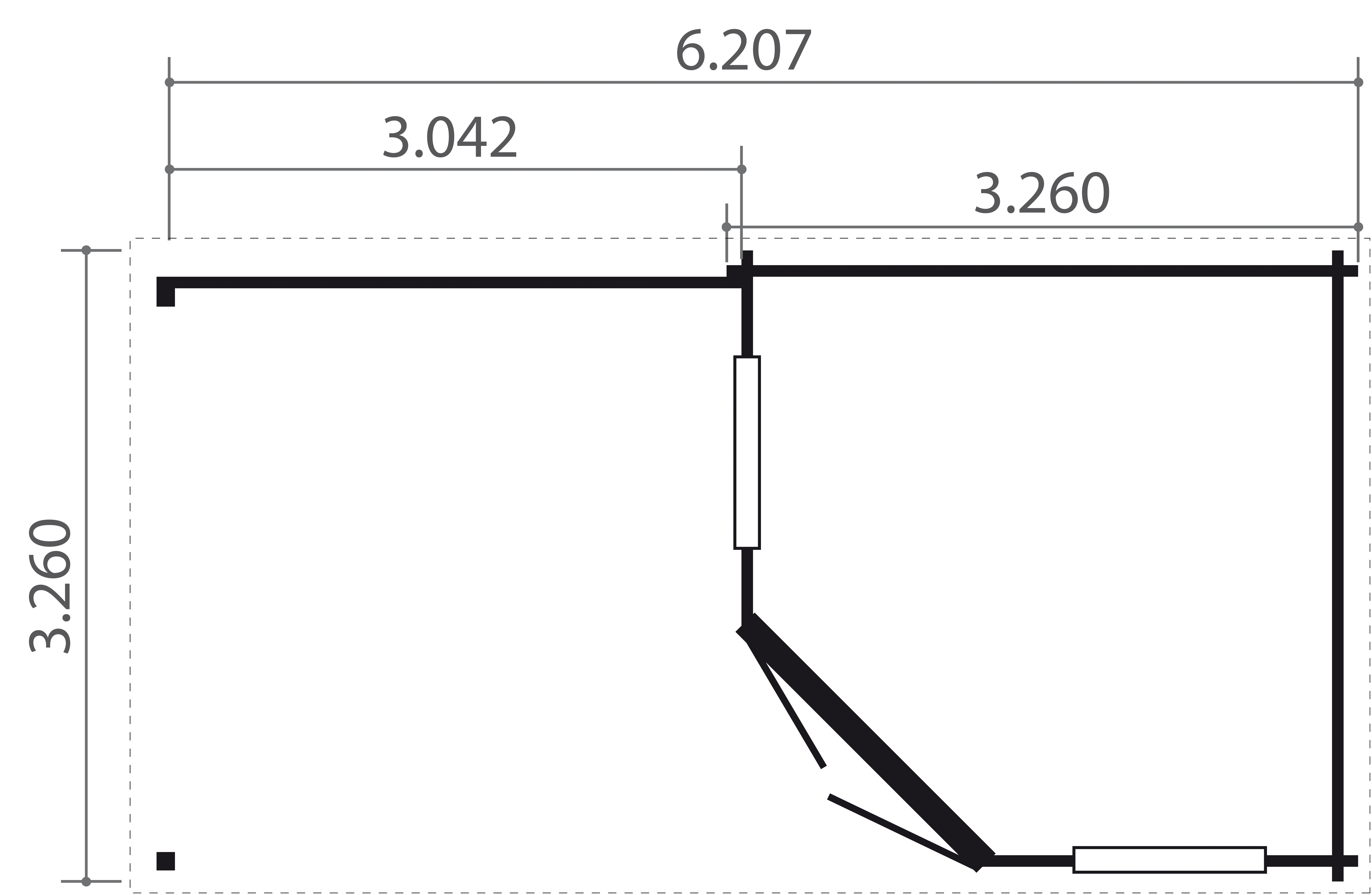 - Débords de toit : avant : 20 cm, cotés : 20 cm